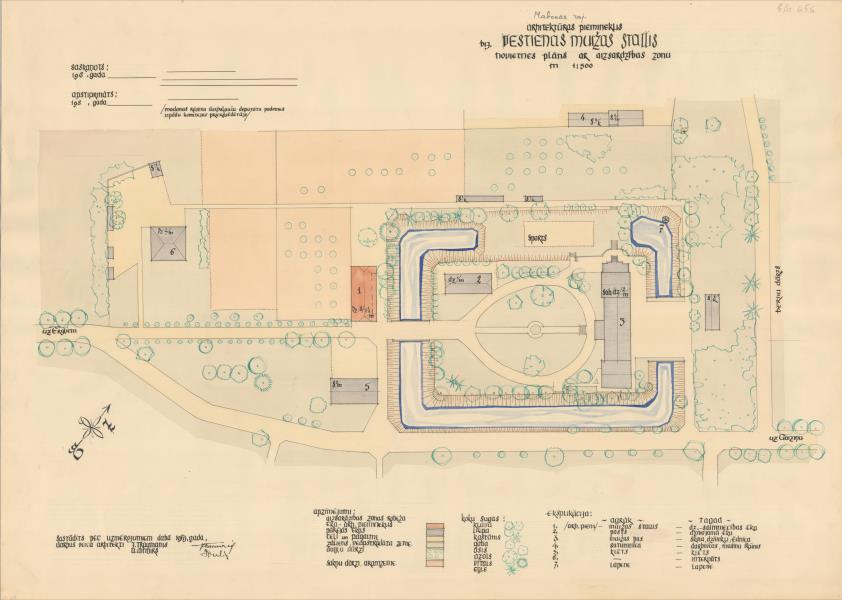 Vestienas muižas apbūve. Novietnes plāns ar aizsardzības zonu (Madonas novads, Vestienas pagasts. Vestiena. Vestienas muiža.)