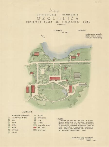 Ozolmuiža. Novietnes plāns ar aizsardzības zonu (Alojas novads, Brīvzemnieku pagasts. Ozolmuiža. Ozolmuižas pils.)