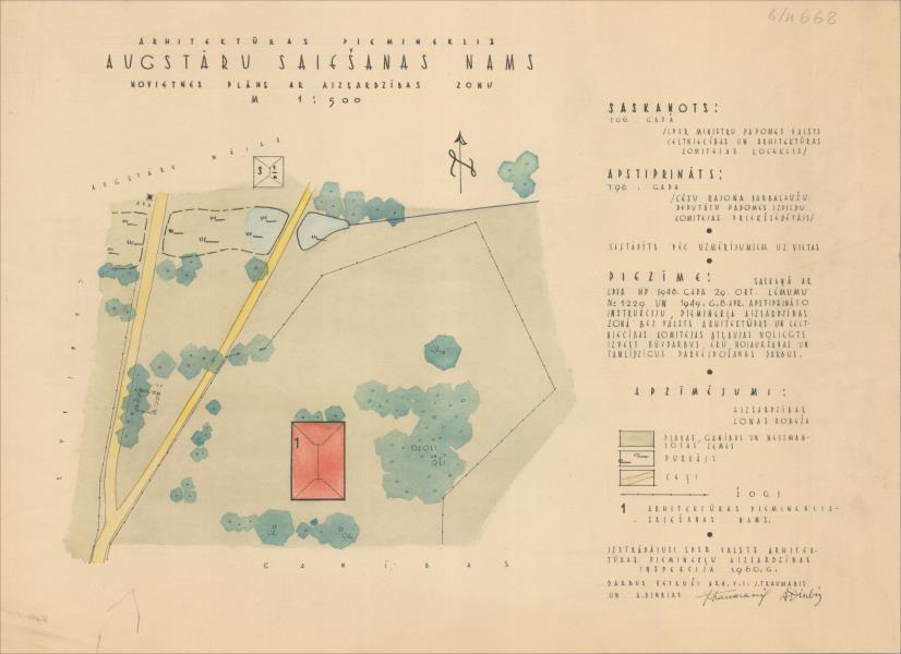 Augstāru saiešanas nams. Novietnes plāns ar aizsardzības zonu (Jaunpiebalgas novads, Zosēnu pagasts. Augstāri.)