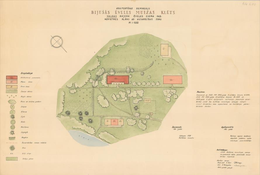 Ēveles muižas klēts. Novietnes plāns ar aizsardzības zonu (Burtnieku novads, Ēveles pagasts. Ēvele. Ēveles muiža.)