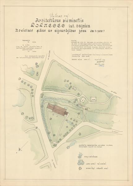 Kokneses luterāņu baznīca. Novietnes plāns ar aizsardzības zonu (Kokneses novads, Kokneses pagasts. Koknese. Blaumaņa iela 1.)