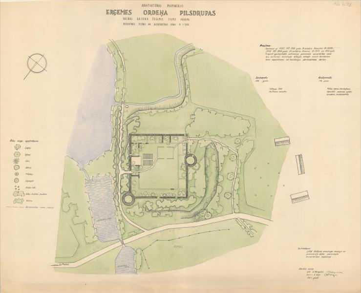 Ērģemes viduslaiku pils. Novietnes plāns ar aizsardzības zonu (Valkas novads, Ērģemes pagasts.)