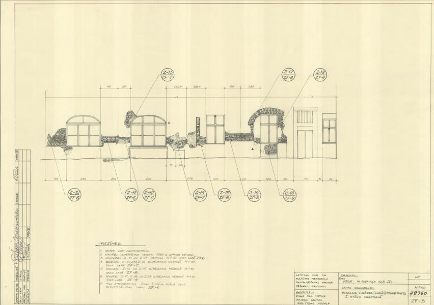 Dzīvojamās ēkas un noliktavu komplekss. Dzīvojamā ēka, pagalma fasādes (labās) fragments 1. stāva augstumā ( Rīga. Grēcinieku iela 28.)