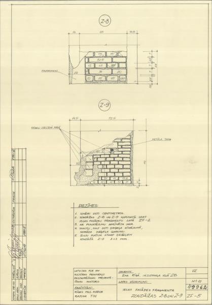 Dzīvojamās ēkas un noliktavu komplekss. Dzīvojamā ēka, ielas fasādes fragmenta zondāžas ( Rīga. Grēcinieku iela 28.)