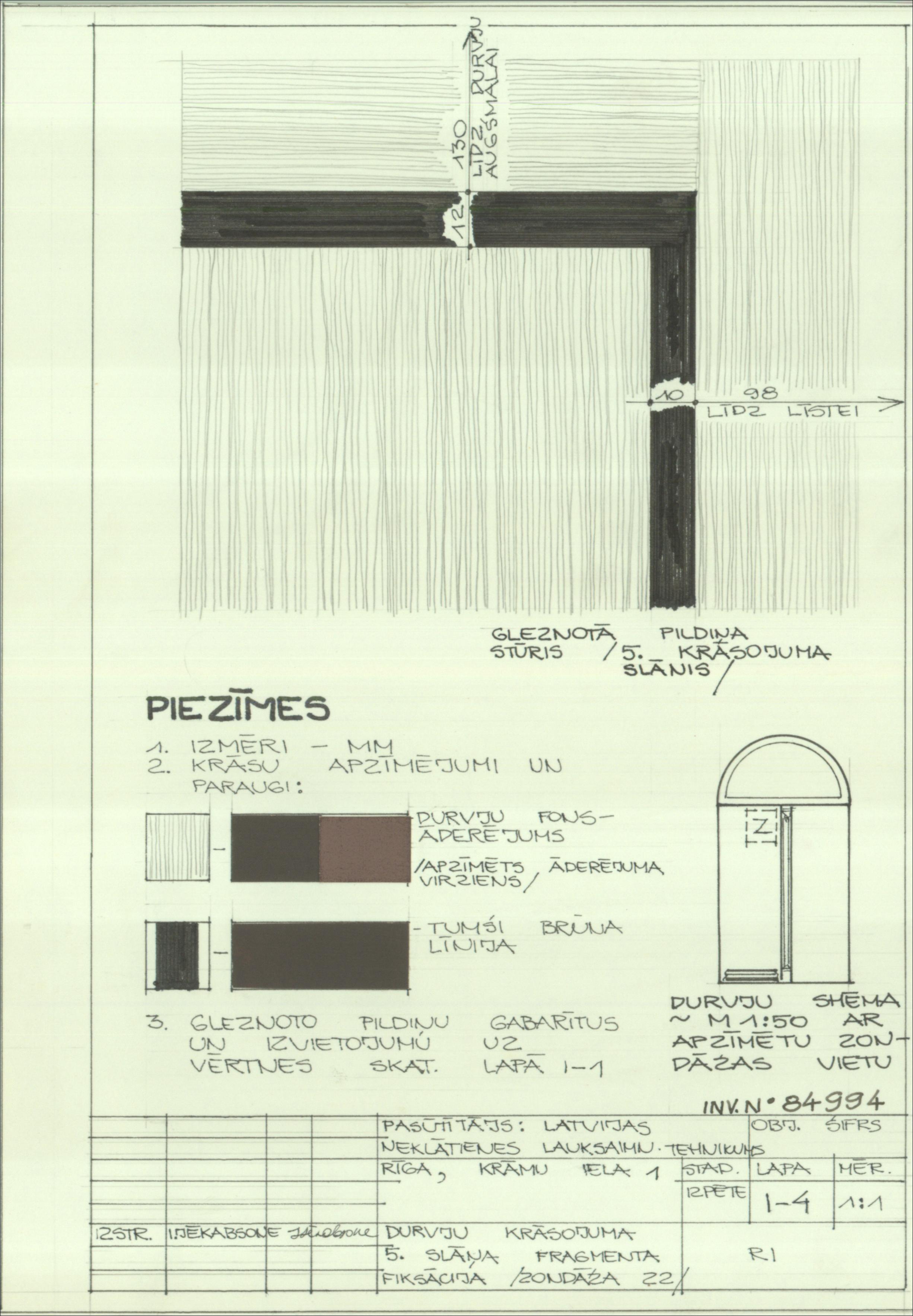 Dzīvojamā ēka. Durvju krāsojuma 5. slāņa fragments (fiksācija, zondāžas) ( Rīga. Krāmu iela 3.)