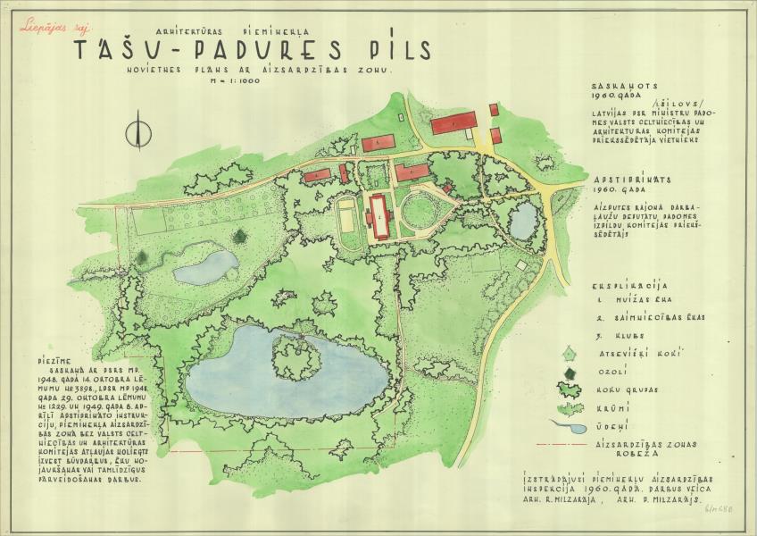 Tāšu - Padures muižas apbūve. Novietnes plāns ar aizsardzības zonu (Aizputes novads, Kalvenes pagasts. Kalvenes pamatskola.)