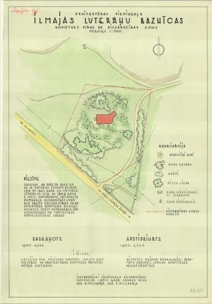 Ilmājas luterāņu baznīca. Novietnes plāns ar aizsardzības zonu (Durbes novads, Vecpils pagasts. Ilmājas evaņģēliski luteriskā baznīca.)