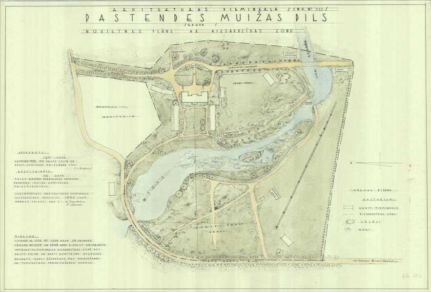 Pastendes muižas apbūve. Novietnes plāns ar aizsardzības zonu (Talsu novads, Ģibuļu pagasts. Pastende.)