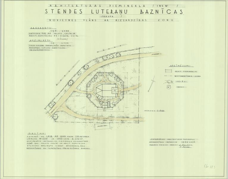 Stendes luterāņu baznīca. Novietnes plāns ar aizsardzības zonu (Talsu novads, Lībagu pagasts. Baznīcmāja.)