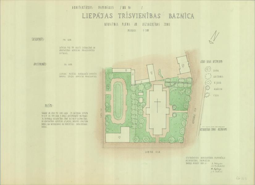 Sv. Trīsvienības luterāņu baznīca ar žogu. Novietnes plāns ar aizsardzības zonu ( Liepāja. Lielā iela 9.)