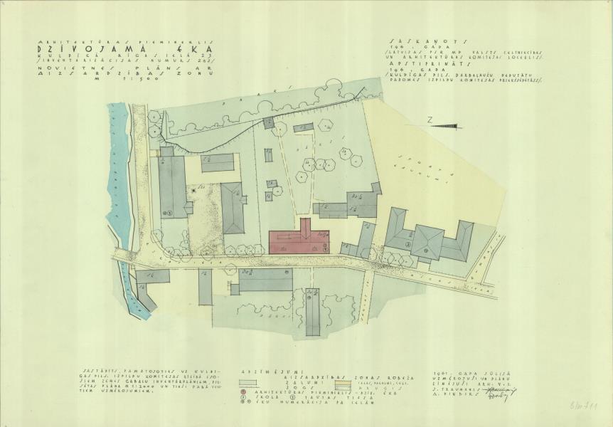 Dzīvojamā ēka. Novietnes plāns ar aizsardzības zonu (Kuldīgas novads, Kuldīga. Kalna iela 23.)