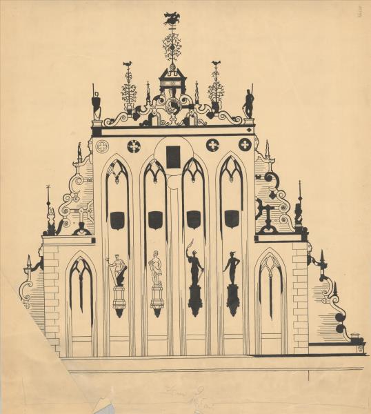 Melngalvju nams. Fasādes zelmenis ( Rīga. Rātslaukums 7.)