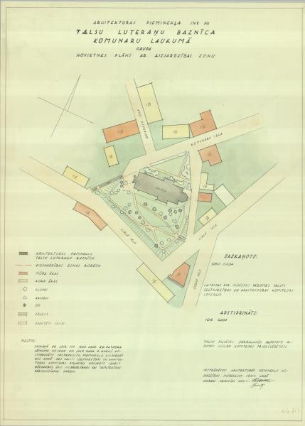 Talsu luterāņu baznīca. Novietnes plāns ar aizsardzības zonu (Talsu novads, Talsi. Baznīcas laukums 4.)