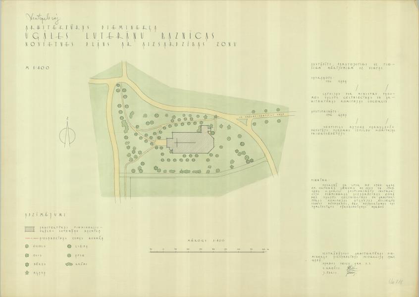 Ugāles luterāņu baznīca. Novietnes plāns ar aizsardzības zonu (Ventspils novads, Ugāles pagasts. Ugāle. Evanģēliski luteriskā baznīca.)