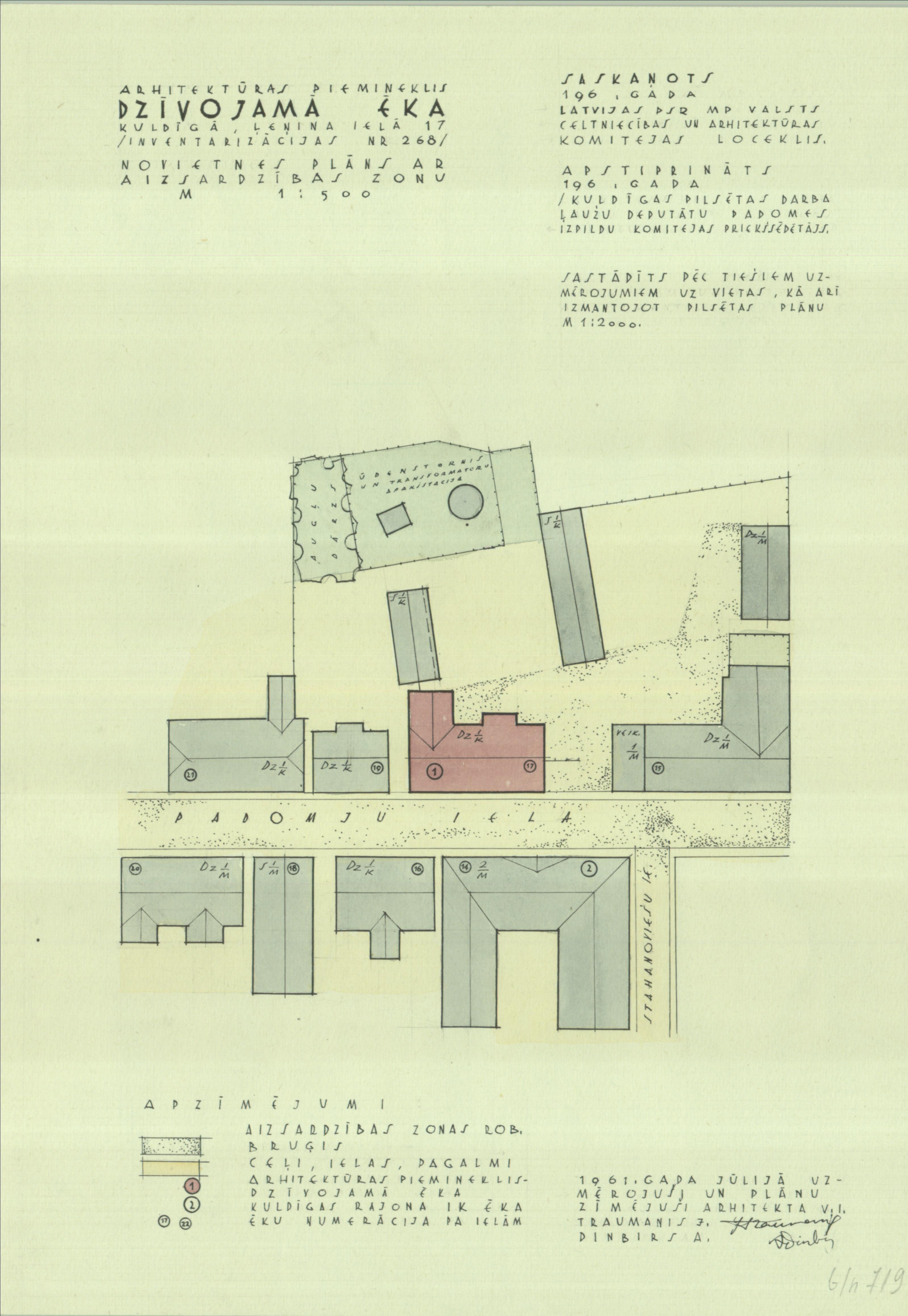 Dzīvojamā ēka. Novietnes plāns ar aizsardzības zonu (Kuldīgas novads, Kuldīga. Liepājas iela 17.)