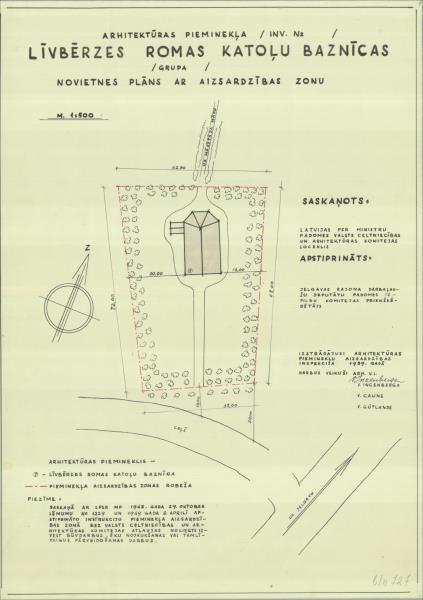 Līvbērzes katoļu baznīca. Novietnes plāns ar aizsardzības zonu (Jelgavas novads, Līvbērzes pagasts. Mācītājmāja.)