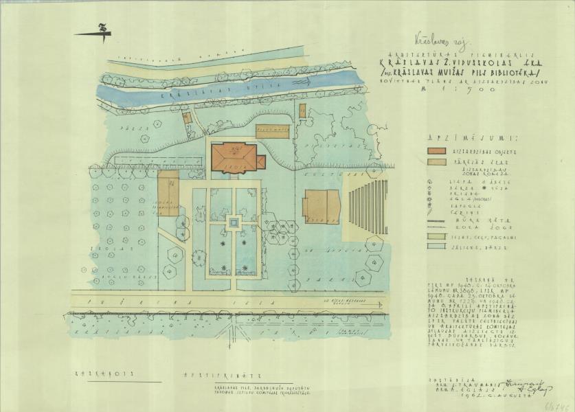 Krāslavas pils bibliotēkas ēka. Novietnes plāns ar aizsardzības zonu (Krāslavas novads, Krāslava. Grāfu Plāteru iela 13.)