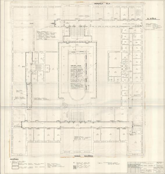Rīgas Politehniskā institūta galvenā ēka, tagad Latvijas Universitāte. Izpētes rezultātu un fotofiksācijas shēma. 3. stāvs ( Rīga. Raiņa bulvāris 19.)