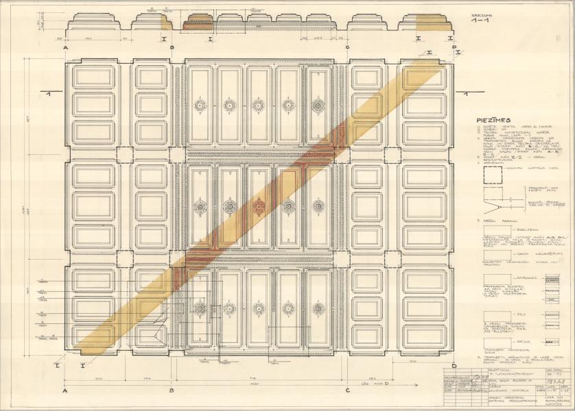 Rīgas Politehniskā institūta galvenā ēka, tagad Latvijas Universitāte. Griestu krāsojuma sistēmas rekonstrukcija. 1. stāvs, galvenais vestibils ( Rīga. Raiņa bulvāris 19.)