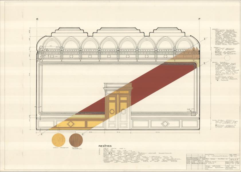 Rīgas Politehniskā institūta galvenā ēka, tagad Latvijas Universitāte. Griestu krāsojuma sistēmas rekonstrukcija. 2. stāvs, Mazais aula ( Rīga. Raiņa bulvāris 19.)