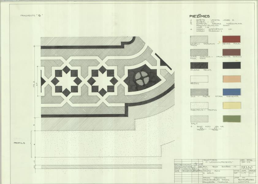 Rīgas Politehniskā institūta galvenā ēka, tagad Latvijas Universitāte. Sienas krāsojuma ornamentālās joslas fragmenta fiksācija. 2. stāvs, mazā aula ( Rīga. Raiņa bulvāris 19.)