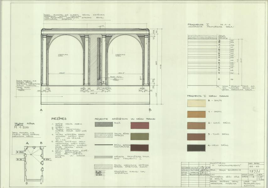 Rīgas Politehniskā institūta galvenā ēka, tagad Latvijas Universitāte. Rāmju sistēmas sienu krāsojuma fiksācija. 2. stāvs, rektorāta sēžu zāle ( Rīga. Raiņa bulvāris 19.)
