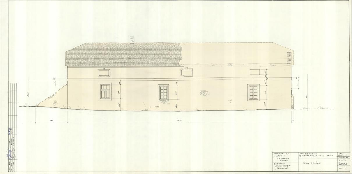 Vestienas muižas stallis. Sānu fasāde (Madonas novads, Vestienas pagasts. Vestiena. Muižas gatve .)