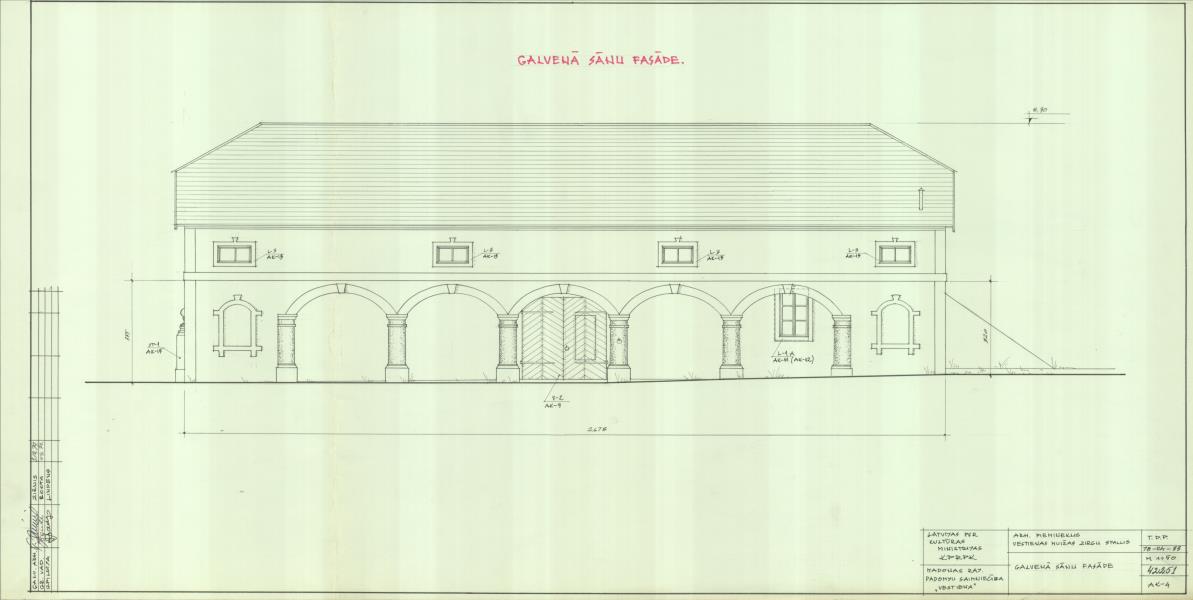 Vestienas muižas stallis. Galvenā sānu fasāde (Madonas novads, Vestienas pagasts. Vestiena. Muižas gatve .)