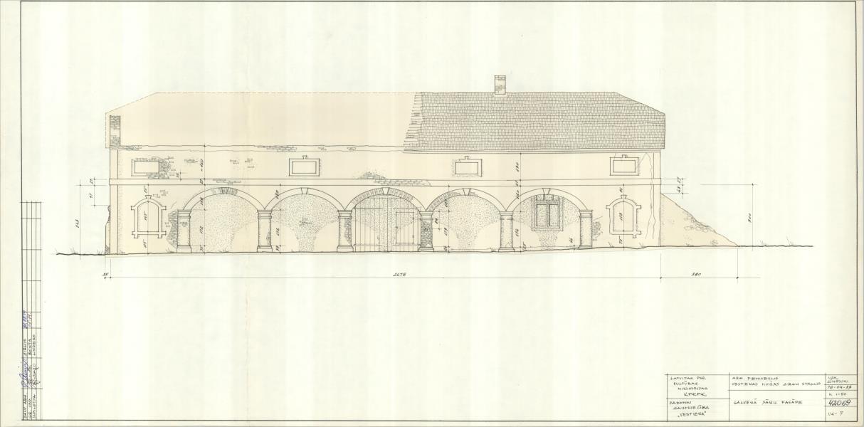 Vestienas muižas stallis. Galvenā sānu fasāde (Madonas novads, Vestienas pagasts. Vestiena. Muižas gatve .)