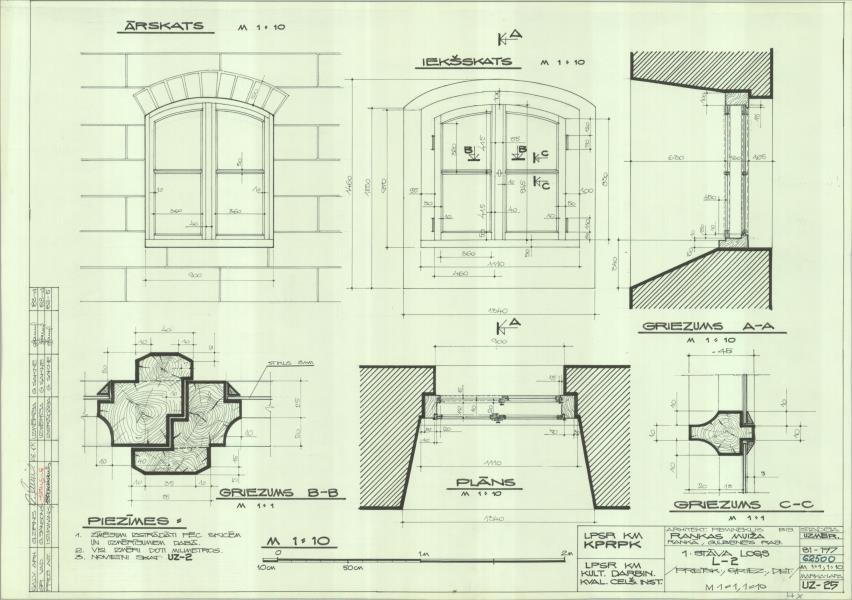 Rankas muižas pils. 1. stāva logs, L-2 (Gulbenes novads, Rankas pagasts. Ranka. Rankas muiža.)