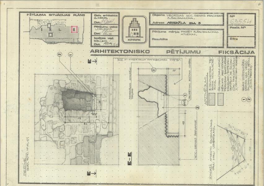 Dzīvojamā ēka. Nocietinājuma sienas ārplakne, šaujamlūku sānu malas, zondāža ( Rīga. Arsenāla iela 3.)