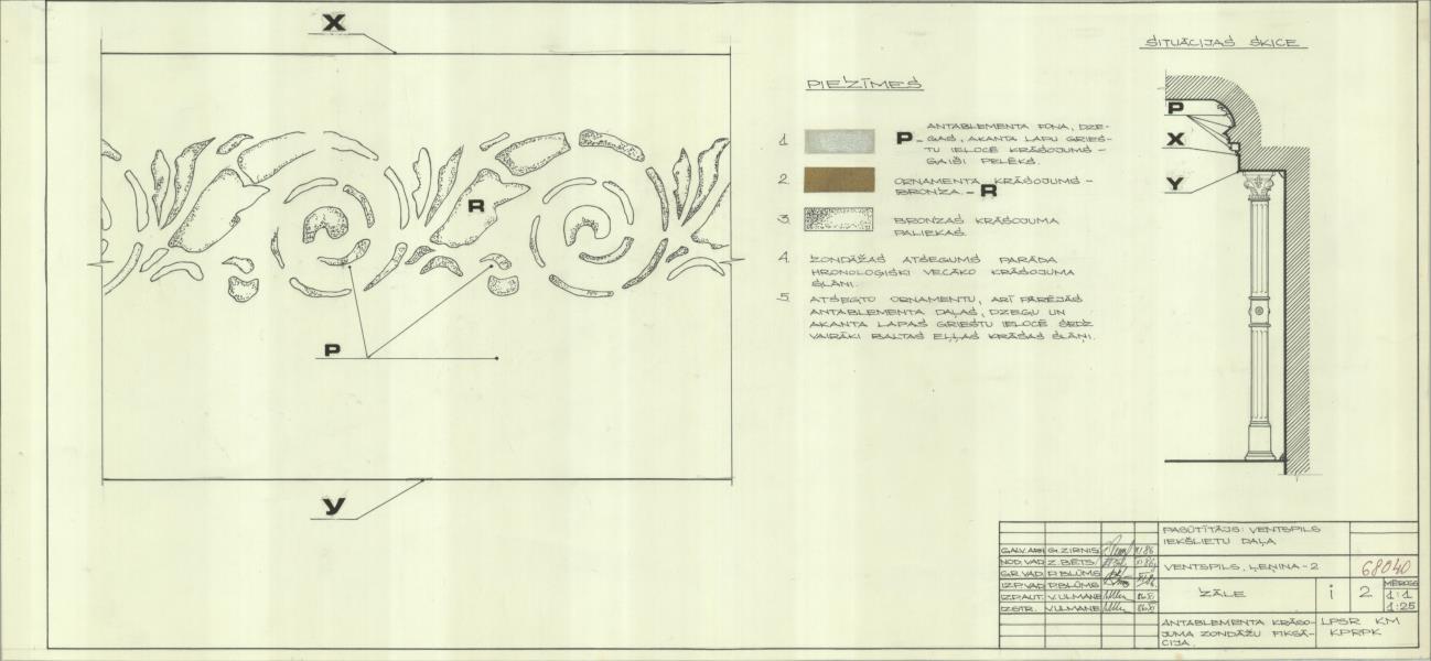 Dzīvojamā ēka. Zāle, antablementa krāsojuma zondāža, situācija ( Ventspils. Kuldīgas iela 2.)