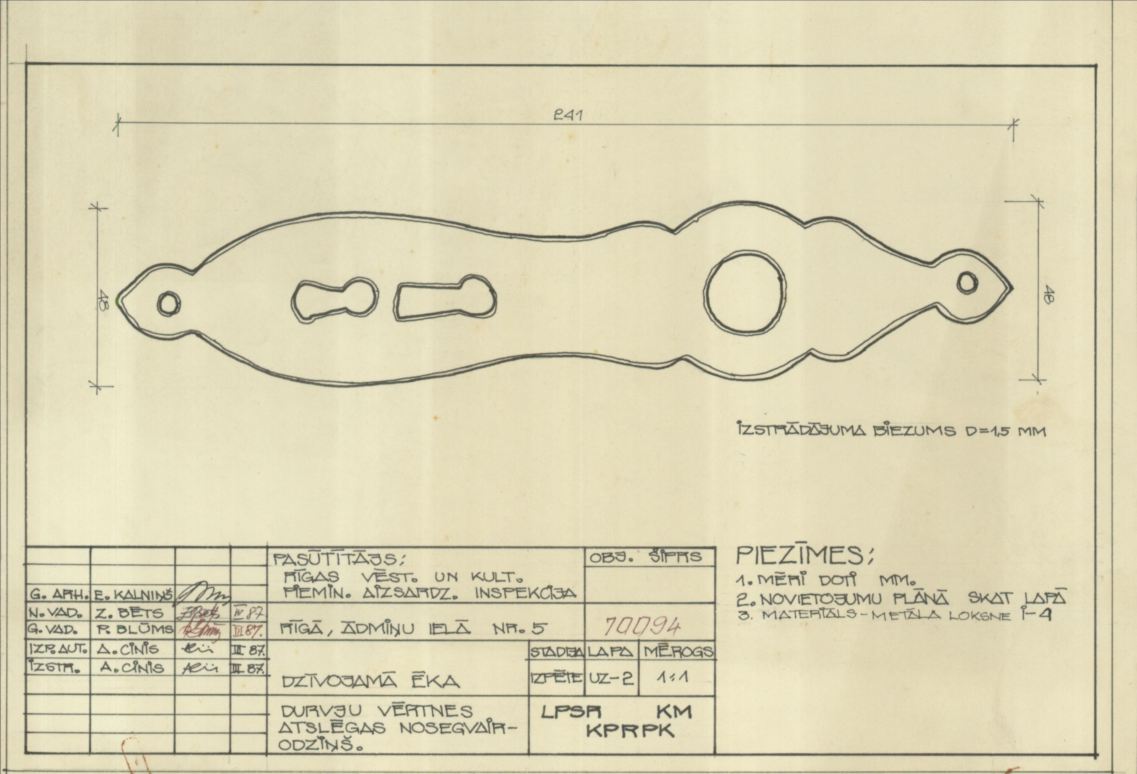 Dzīvojamā ēka. Durvju vērtnes atslēgas nosegvairodziņš ( Rīga. Ādmiņu iela 5.)