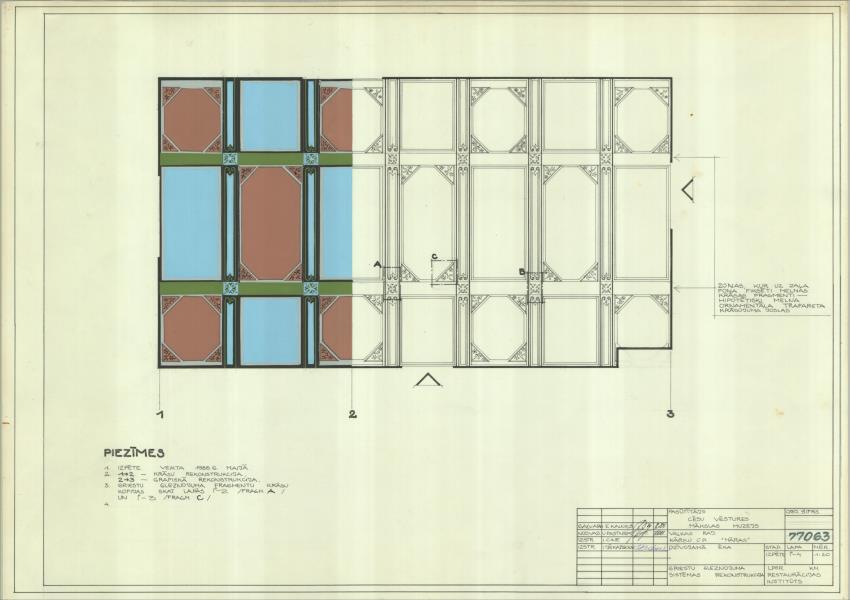 Dzīvojamā ēka. Griestu gleznojuma fragmenta kopija (Valkas novads, Kārķu pagasts. Māras.)