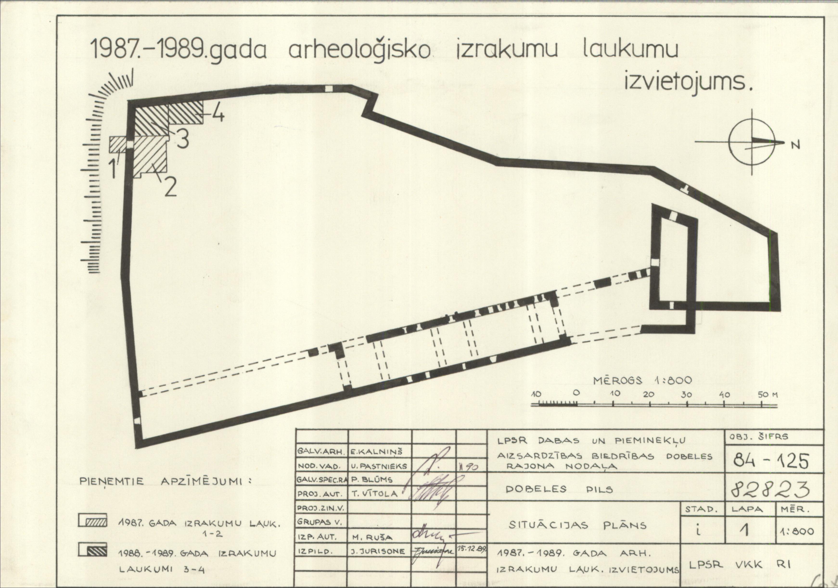 Dobeles pilsdrupas. 1987.-1989. gada arheoloģisko izrakumu laukuma izvietojums (Dobeles novads, Dobele. Brīvības iela 2c.)