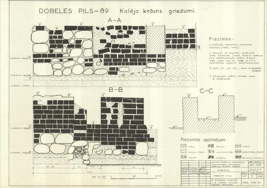 Dobeles pilsdrupas. 3. izrakumu laukuma 1., 2. kārtas, kalēja krāsns griezumi (Dobeles novads, Dobele. Brīvības iela 2c.)