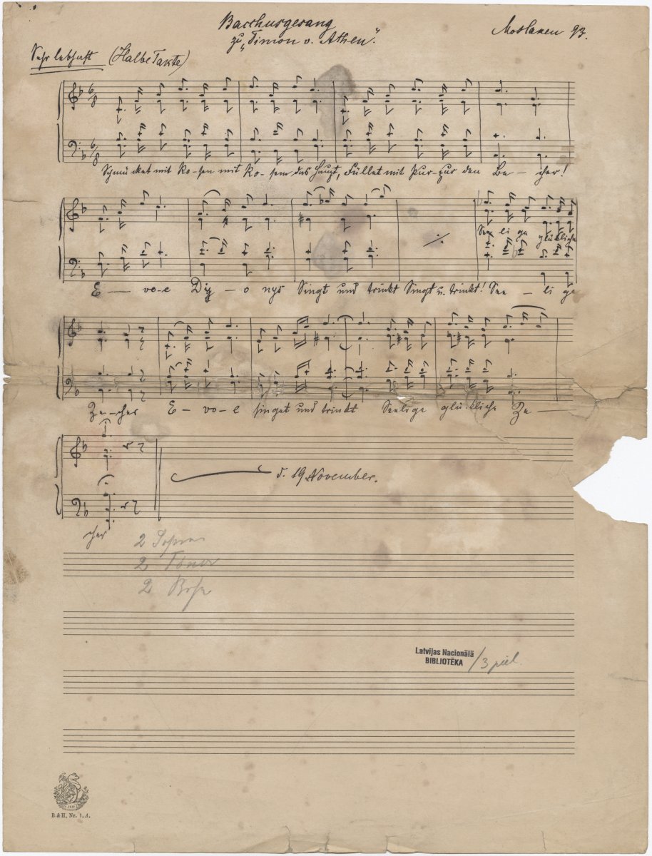 1 vokālā partitūra (1 lpp.) + 3 vokālās balsis ; 34 cm