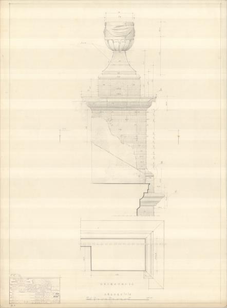 Sv. Pētera luterāņu baznīca. Galvenās fasādes vainagojošās volotas nobeiguma vāze ( Rīga. Reformācijas laukums 1.)