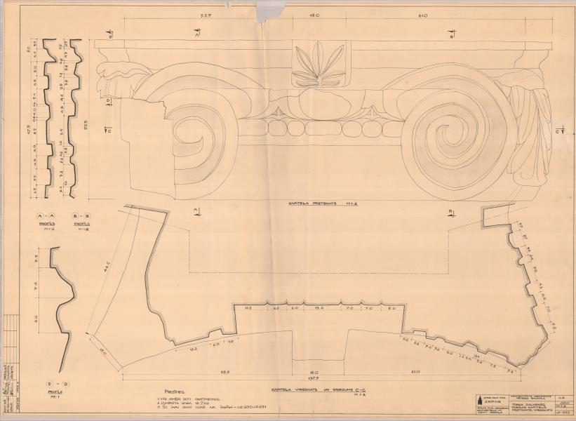 Sv. Pētera luterāņu baznīca. Torņa galvenā dzega, kapitelis ( Rīga. Reformācijas laukums 1.)