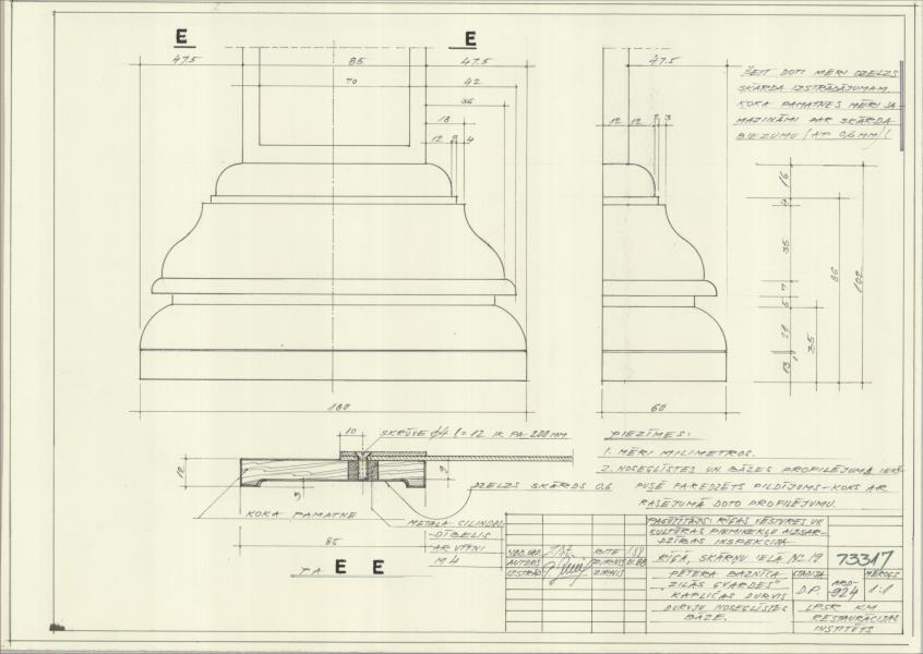 Sv. Pētera luterāņu baznīca. Zilās gvardes kapličas durvis, noseglīstes bāze ( Rīga. Reformācijas laukums 1.)