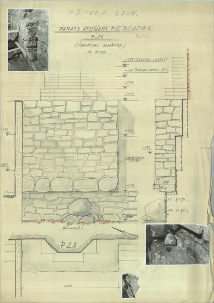 Sv. Pētera luterāņu baznīca. Pamatu atsegums pie pilastra ( Rīga. Reformācijas laukums 1.)