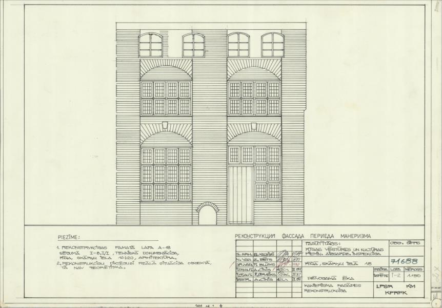 Dzīvojamā ēka. Manierisma fasādes rekonstrukcija ( Rīga. Skārņu iela 18.)