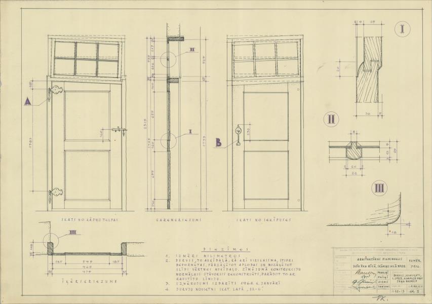 Skats no kāpņu telpas, garengriezums, skats no iekšpuses, šķērsgriezums
