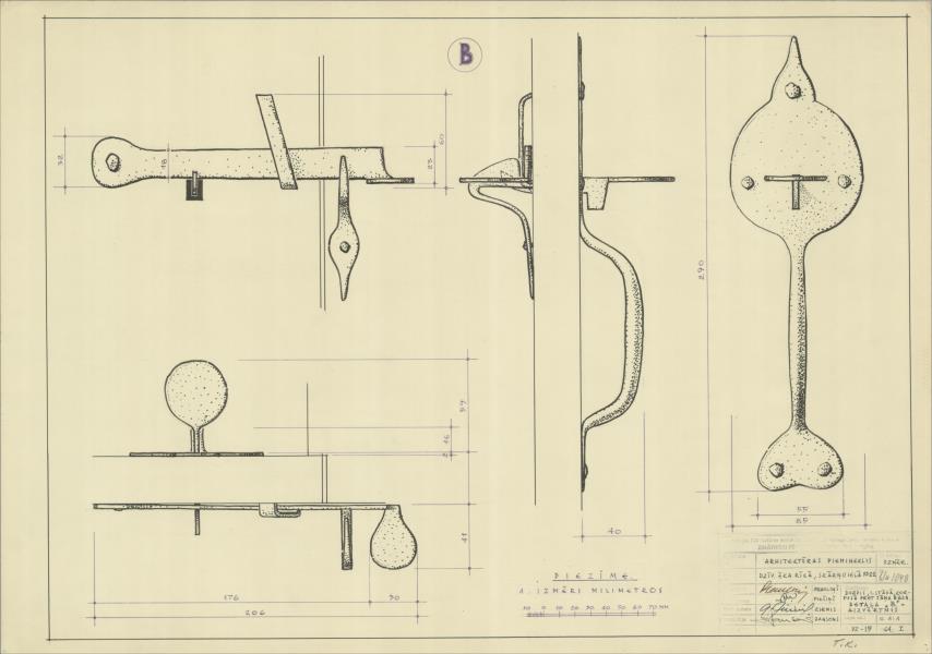 Ekes konvents. Durvis 1. stāva koridorā pret Jāņa baznīcu. Detaļa – aizvērtnis ( Rīga. Skārņu iela 22.)