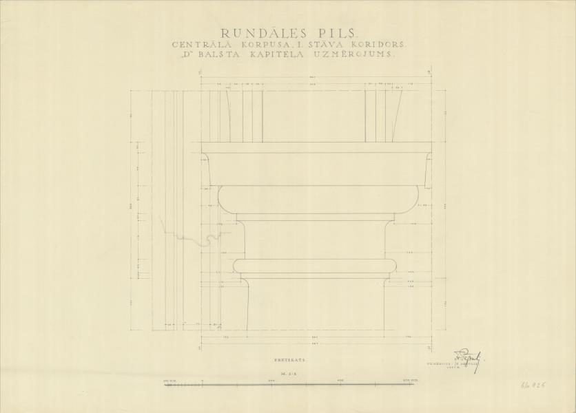 Rundāles pils. Centrālā korpusa 1. stāva koridors, balsta kapitelis (Rundāles novads, Rundāles pagasts. Pilsdrundāle. Rundāles pils.)