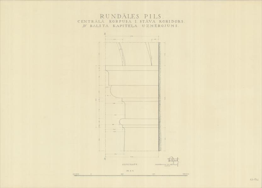 Rundāles pils. Centrālā korpusa 1. stāva koridors, balsta kapitelis (Rundāles novads, Rundāles pagasts. Pilsdrundāle. Rundāles pils.)