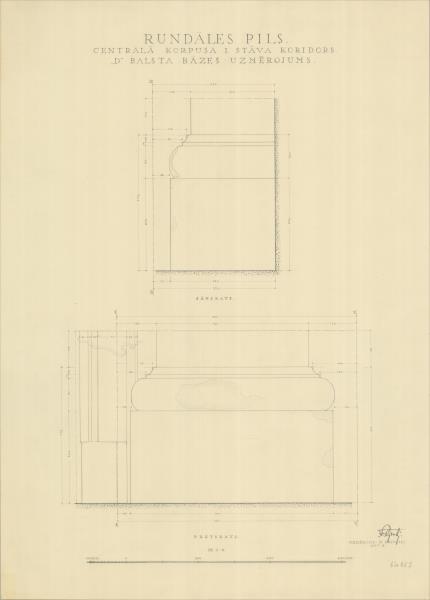 Rundāles pils. Centrālā korpusa 1. stāva koridors, balsta bāze (Rundāles novads, Rundāles pagasts. Pilsdrundāle. Rundāles pils.)