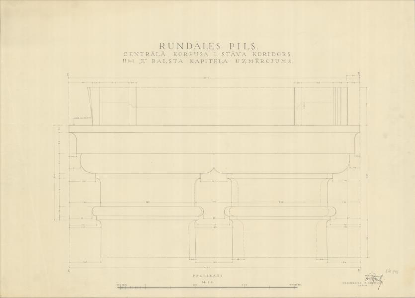 Rundāles pils. Centrālā korpusa 1. stāva koridora balsta kapitelis (Rundāles novads, Rundāles pagasts. Pilsdrundāle. Rundāles pils.)