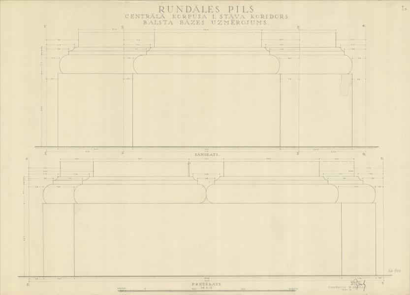 Rundāles pils. Centrālā korpusa 1. stāva koridora balsta bāze (Rundāles novads, Rundāles pagasts. Pilsdrundāle. Rundāles pils.)