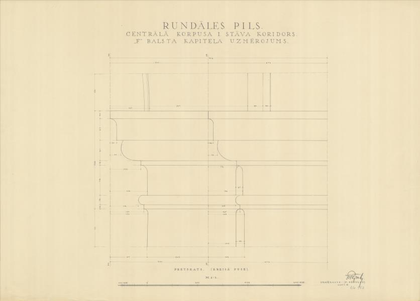 Rundāles pils. Centrālā korpusa 1. stāva koridora balsta kapitelis (Rundāles novads, Rundāles pagasts. Pilsdrundāle. Rundāles pils.)